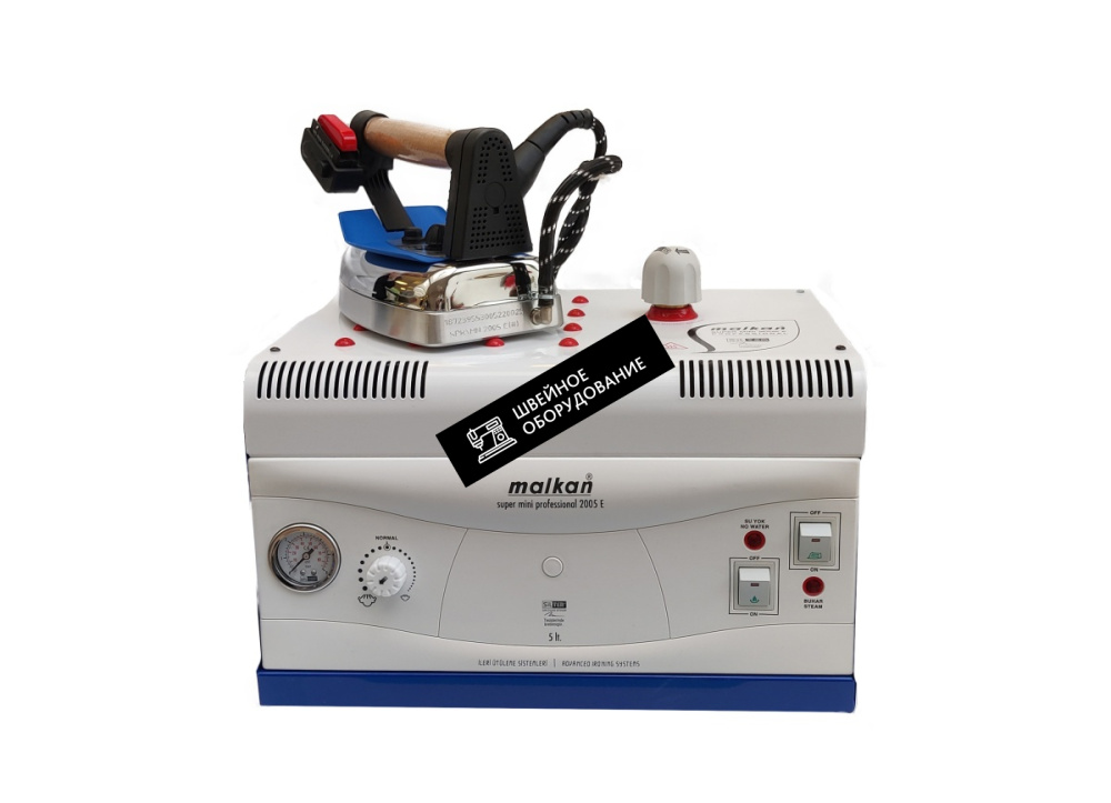 Парогенератор в комплекте с электропаровым утюгом. Применение: Индивидуальное производство швейных изделий, бытовой уход за швейными изделиями Преимущества: Имеется встроенный регулятор подачи пара Бойлер выполнен из нержавеющей стали и не подвержен коррозии Компактен и прост в использовании Давление пара контролируется манометромПриобретать товар Парогенератор Malkan MINI2005 в интернет-магазине «Швейное оборудование» удобно: