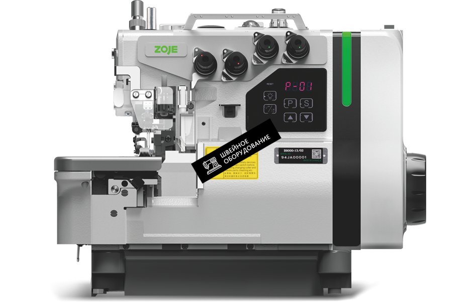 ZOJE B9500-13-ED3 - 2-игольная промышленная высокоскоростная швейная машина оверлок 4-ниточного цепного стежка с функцией обрезки нитей, машина оснащена тремя датчиками для автоматического подъема лапки перед началом шитья, включения автоматической обрезки и задания длины конца нити после обрезки, встроенными электродвигателем 550 Вт и блоком управления автоматизированными функциями подъема лапки, плавной регулировки скорости шитья, обрезки нитей и вытяжки обрези, головка в комплекте с внешним устройством пневматического отсоса обрези. Число оборотов главного вала до 7500 об/мин, длина стежка до 3,8 мм, напряжение 220 В.Поставляется в комплекте с Устройством отсоса обрези ниток D1881-J06